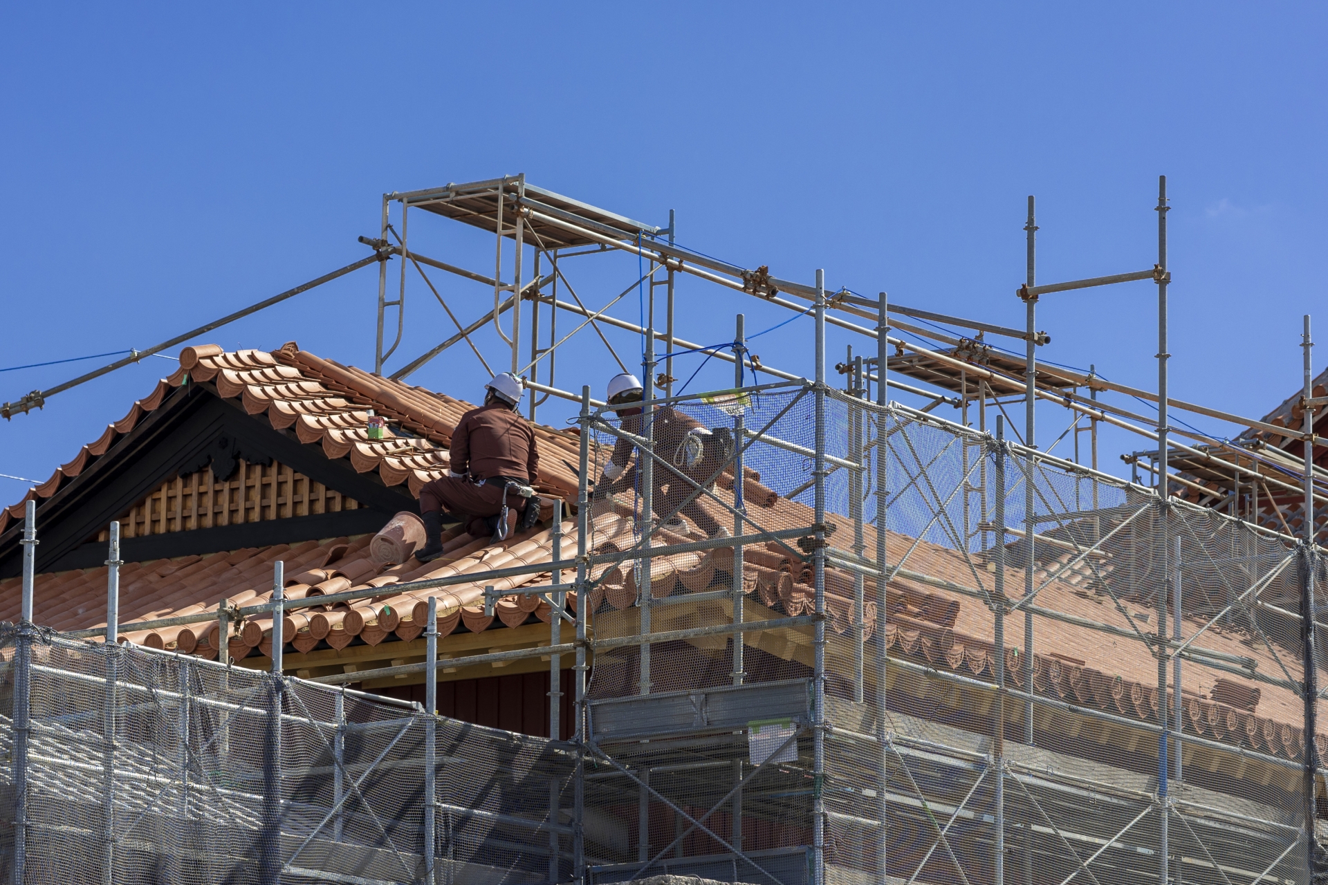 人通りの多い場所でも、足場の内側から安全に資材を降ろすことができます。